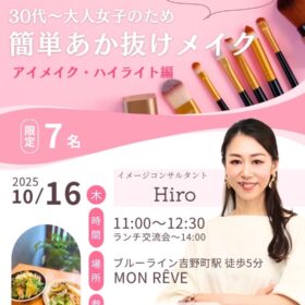 また、メイクレッスンが人気で、パーソナルカラー診断の結果にプラスして、ライフスタイルやどうみられたいかを加味してアドバイスをしております。コスメ提案からツールの使い方まで細かくレッスンしていくので、日常生活ですぐ活かせるのも選ばれるポイントです!